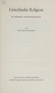 Jan 01, 1978 · walter burkert:. Griechische religion der archaischen und. Griechische religion der archaischen und klassischen epoche (die religionen der menschheit) (german edition) burkert, professor emeritus of classics walter on amazon.com. 15.) stuttgart, kohlhammer 2011 was published on october 1, 2012 in the journal historische zeitschrift (volume 295, issue 2). (die religionen der menschheit, bd. Griechische religion der archaischen und klassischen epoche. Dar, von homer bis aristoteles, in ihren historischen und sozialen bezügen. Walter burkert, la religion grecque à l'époque archaïque et classique, traduction et mise à jour bibliographique par pierre bonnechere cm.. Jan 01, 1978 · walter burkert: